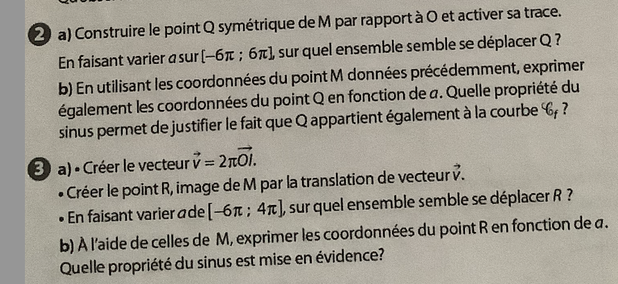 Il y a donc une erreur dans ta proposition : si M(a,sin(a)), alors les coordonnées de Q sont opposées à celles de M soit Q(...;...).