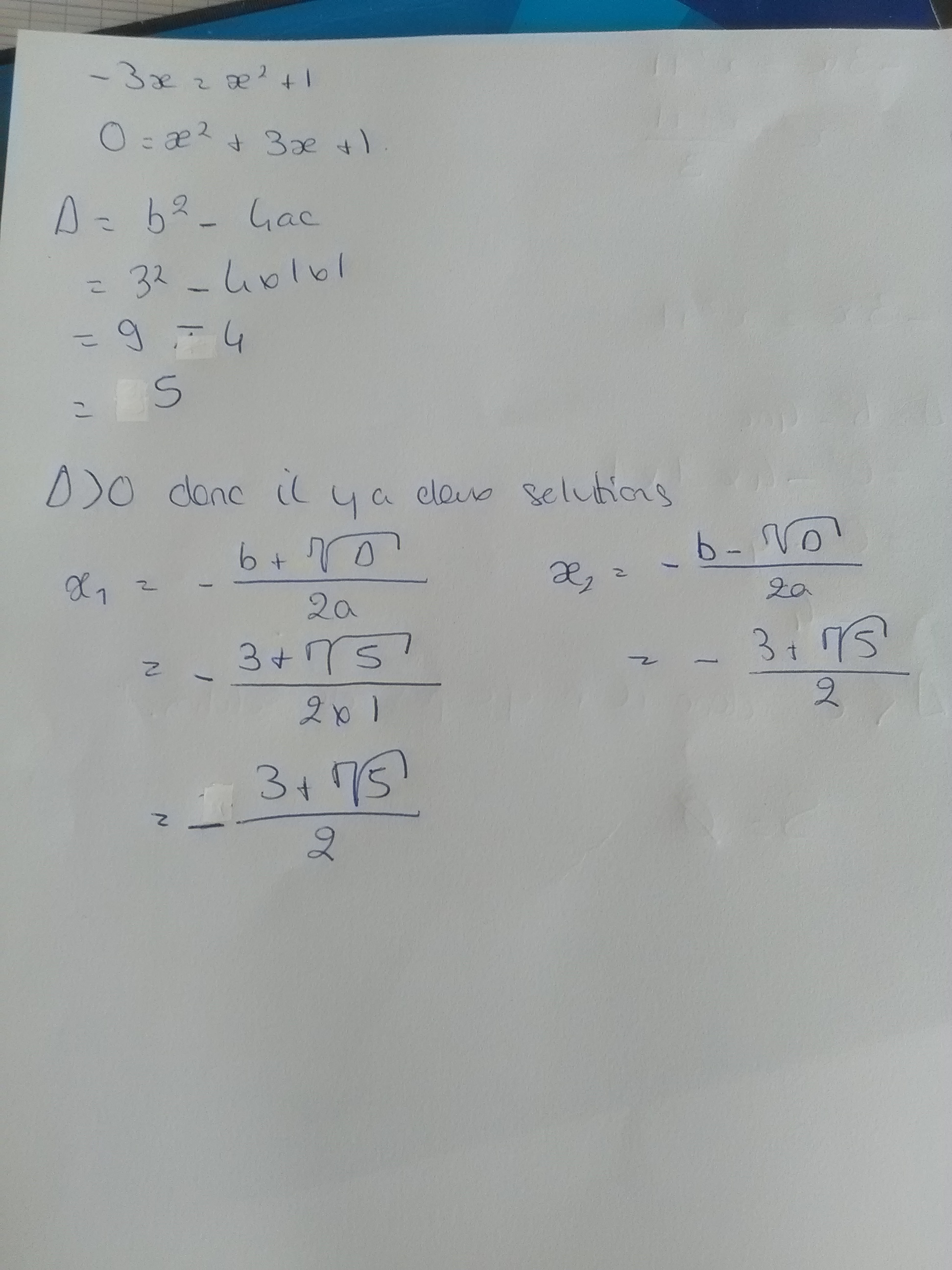<=> -3x = x² + 1 et x non nul