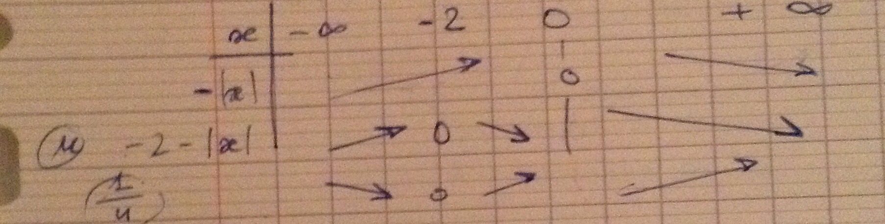 Je dois determiner le tableau de varition de u, puis celii de f=1/u dans le cas suivant : u:x -> -2-|x|
