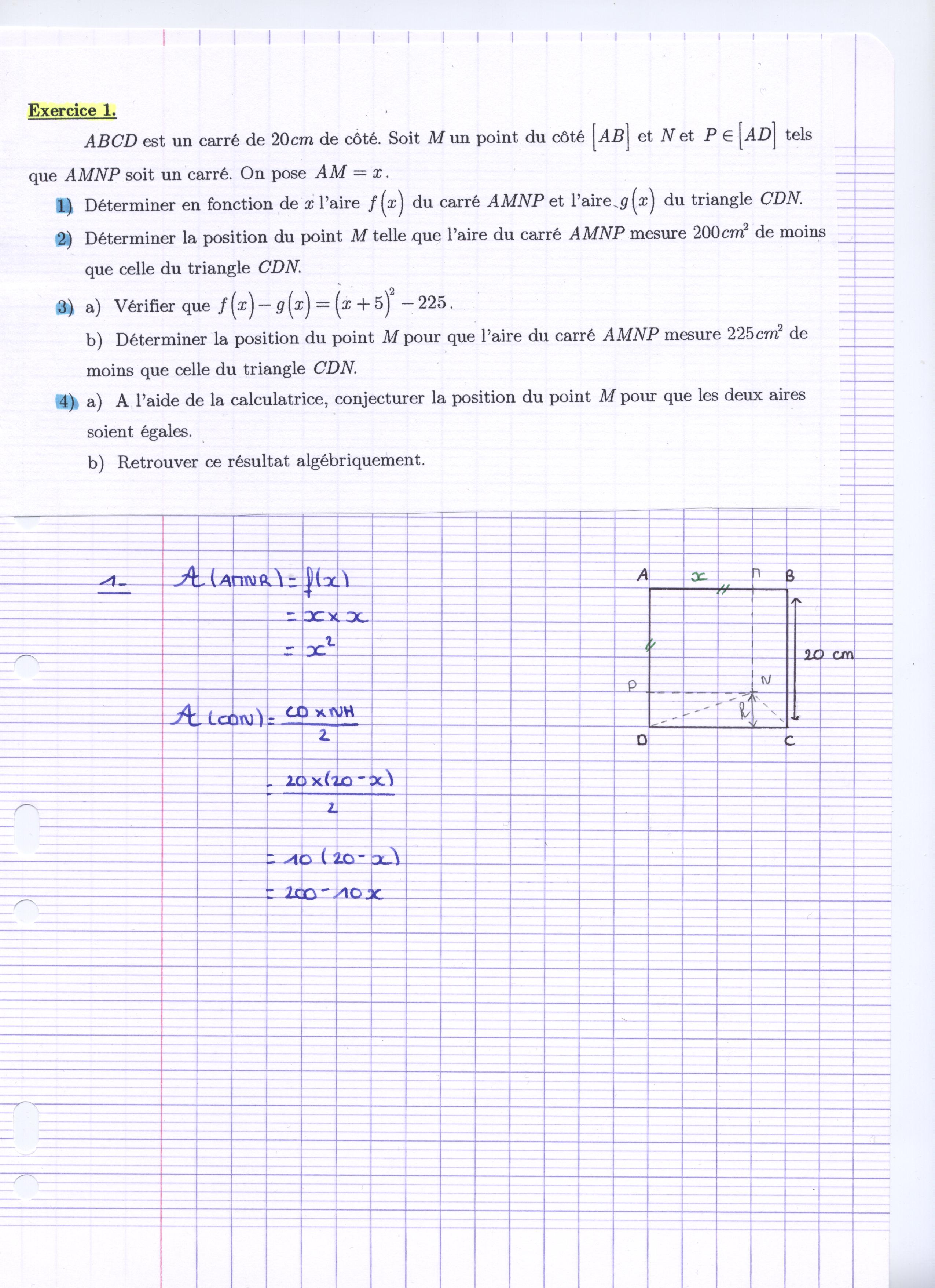 Pour la question 2, tu peux traduire l'énoncé à l'aide d'une équation : \(f(x)=g(x)-200\).
