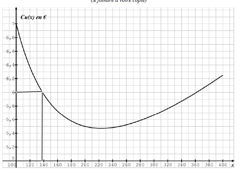 La courbe représentative du coût unitaire est donnée en annexe 4 sur [100 ; 400].