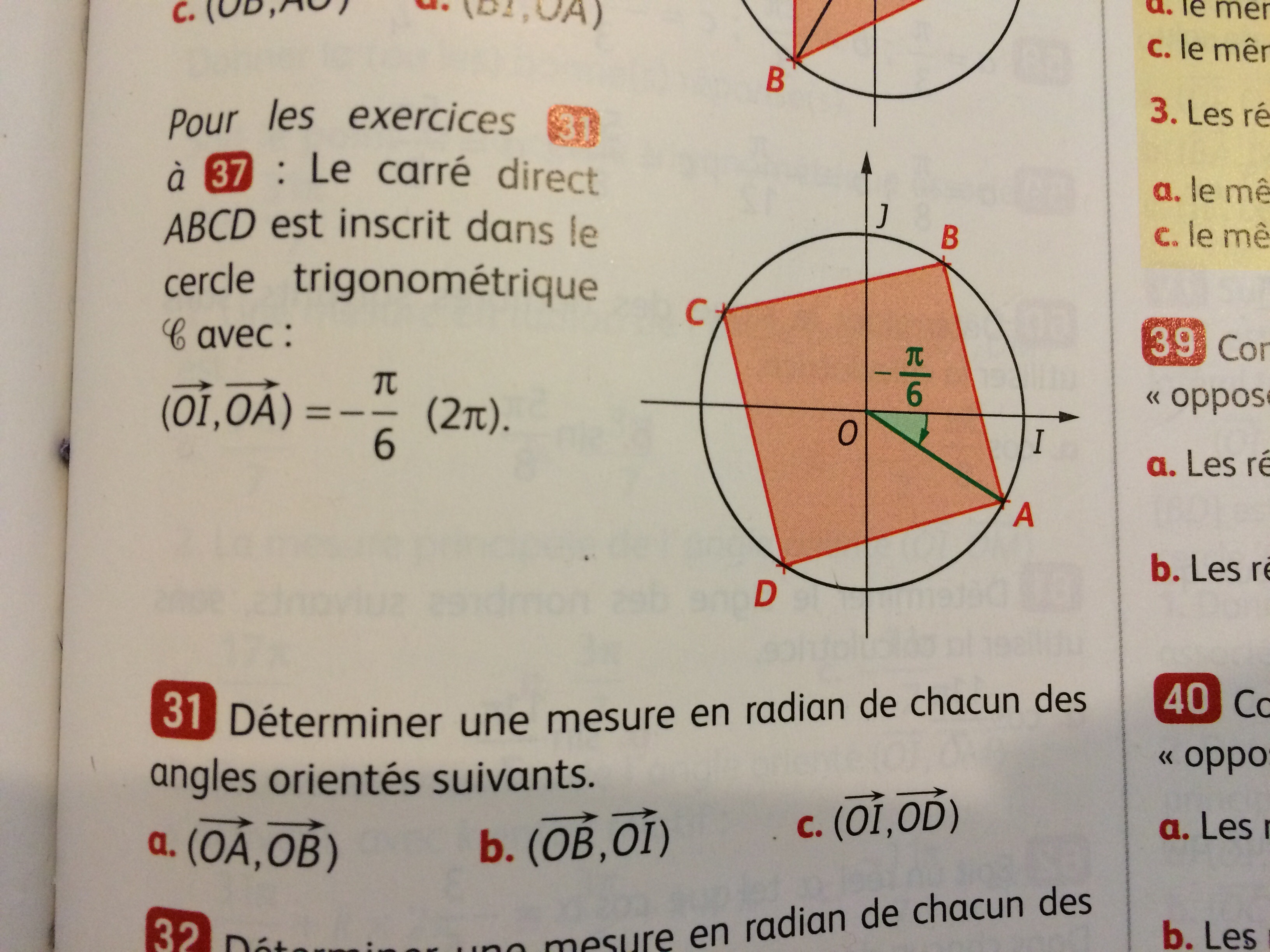 \((\overrightarrow{OA};\overrightarrow{OI})+(\overrightarrow{OI};\overrightarrow{OB})= \frac{\pi }{6}\) +\(\frac{\pi }{2}\) à 2pi près.