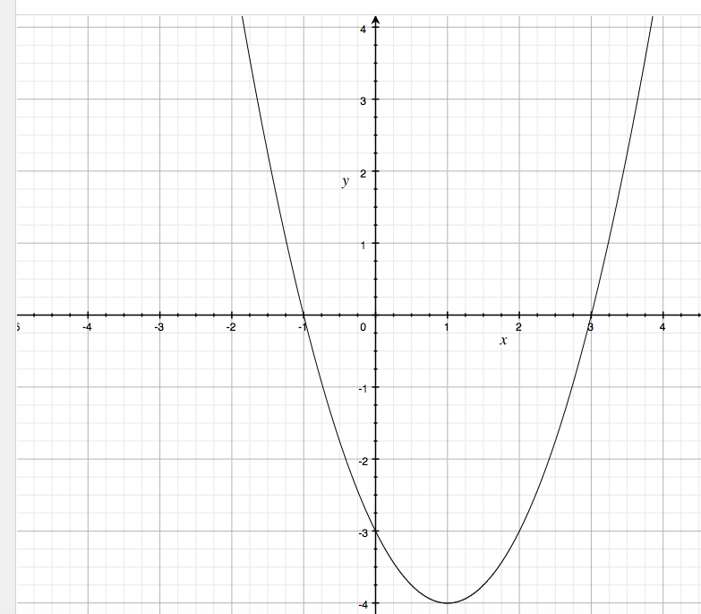 la courbe va couper l'axe des abscisses en -1 et 3 comme le montre le graphique