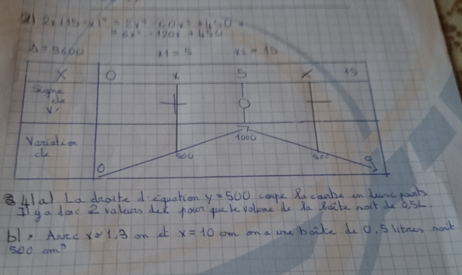 Ainsi on doit prendre x = 10 pour avoir une valeur la plus de 500 cm(cube)