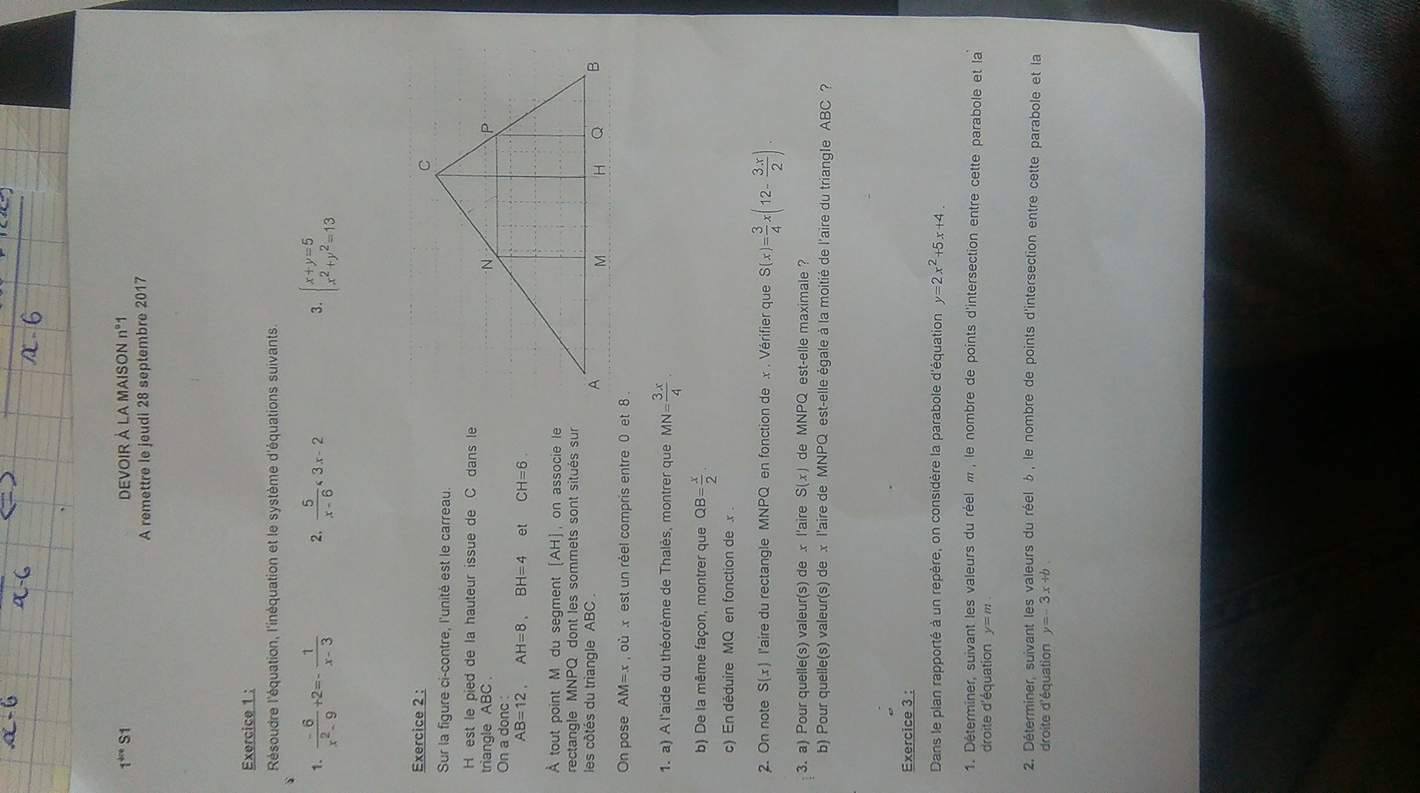 Je n'arrive pas à mon devoir de maths, svp aidez moi
