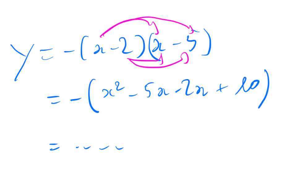 Bonjour je suis en première S et j'ai un devoir maison à rendre pour lundi l'énoncé et étudier les positions relatives de deux courbes d'équations j'ai réussi à développer la première fonction mais la seconde y = —(x—2)(x—5) n'arrive pas à la développer. Merci de votre aide