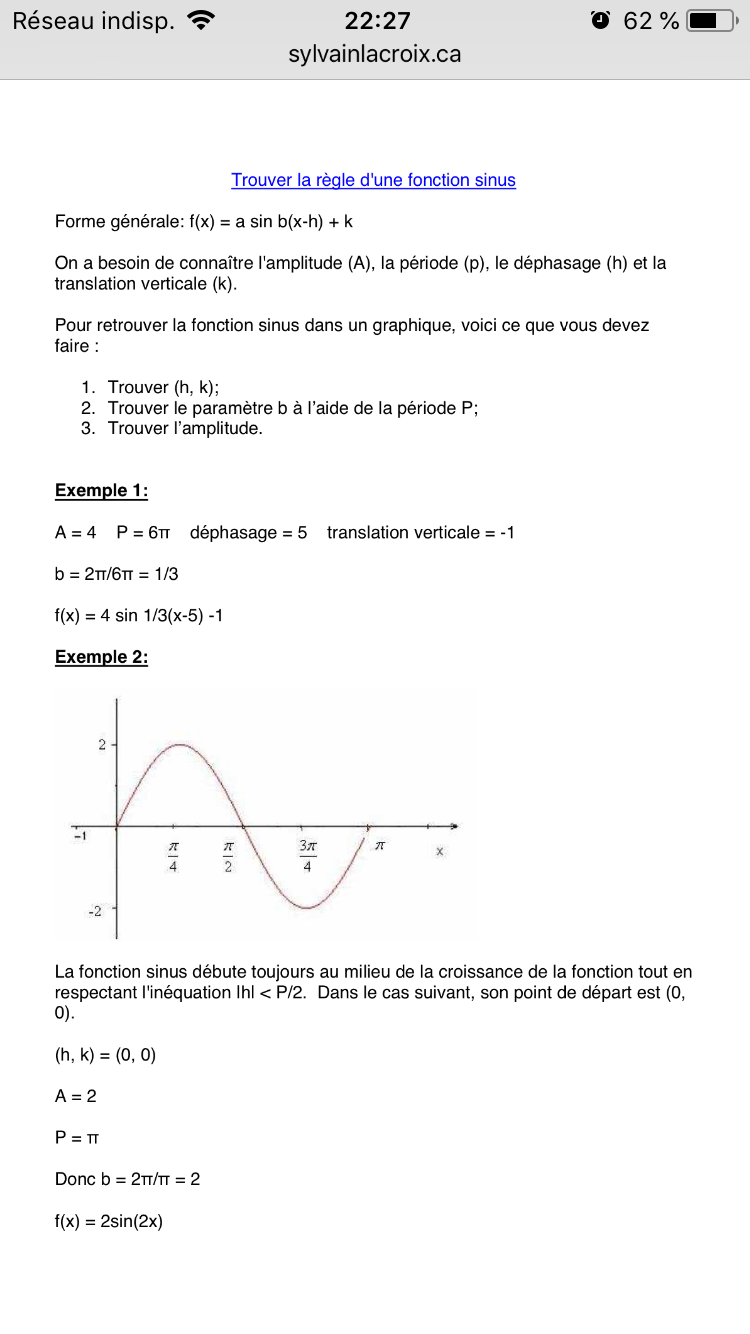 Pour le b) on doit trouver f(x) = 3 sin(\(\pi\)(x-1)) - 1. (on peut vérifier que f(1) = -1 ; f(0,5) = -4 ....)