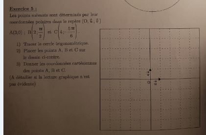 J'ai repris le cercle et j'ai ajouté les données cartésiennes demandées dans l'exercice. Merci beaucoup pour votre aide.