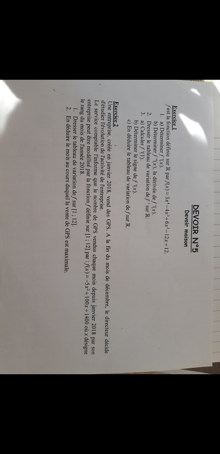 Bonjour, j'ai un dm à rendre sur les dérivés.