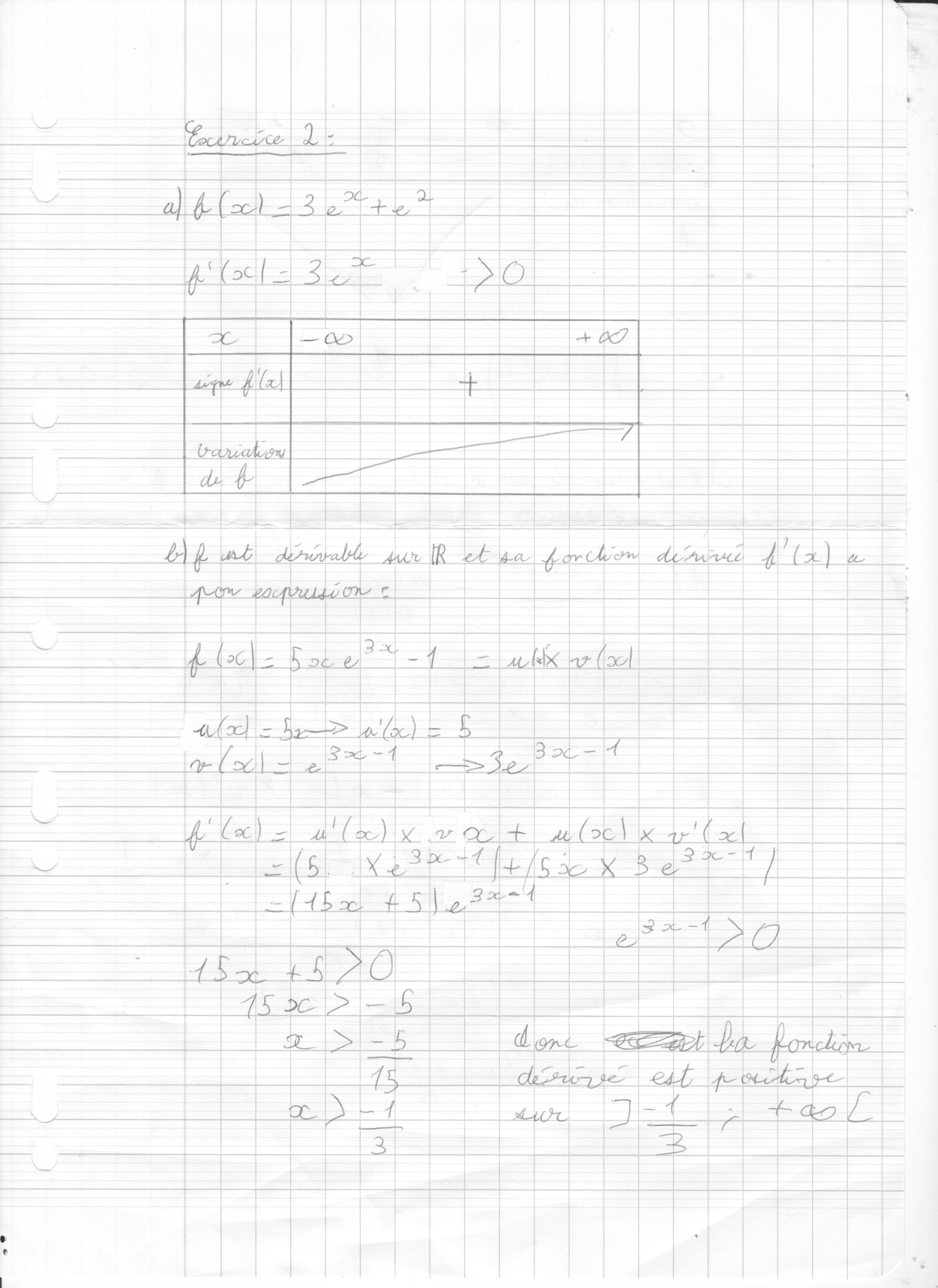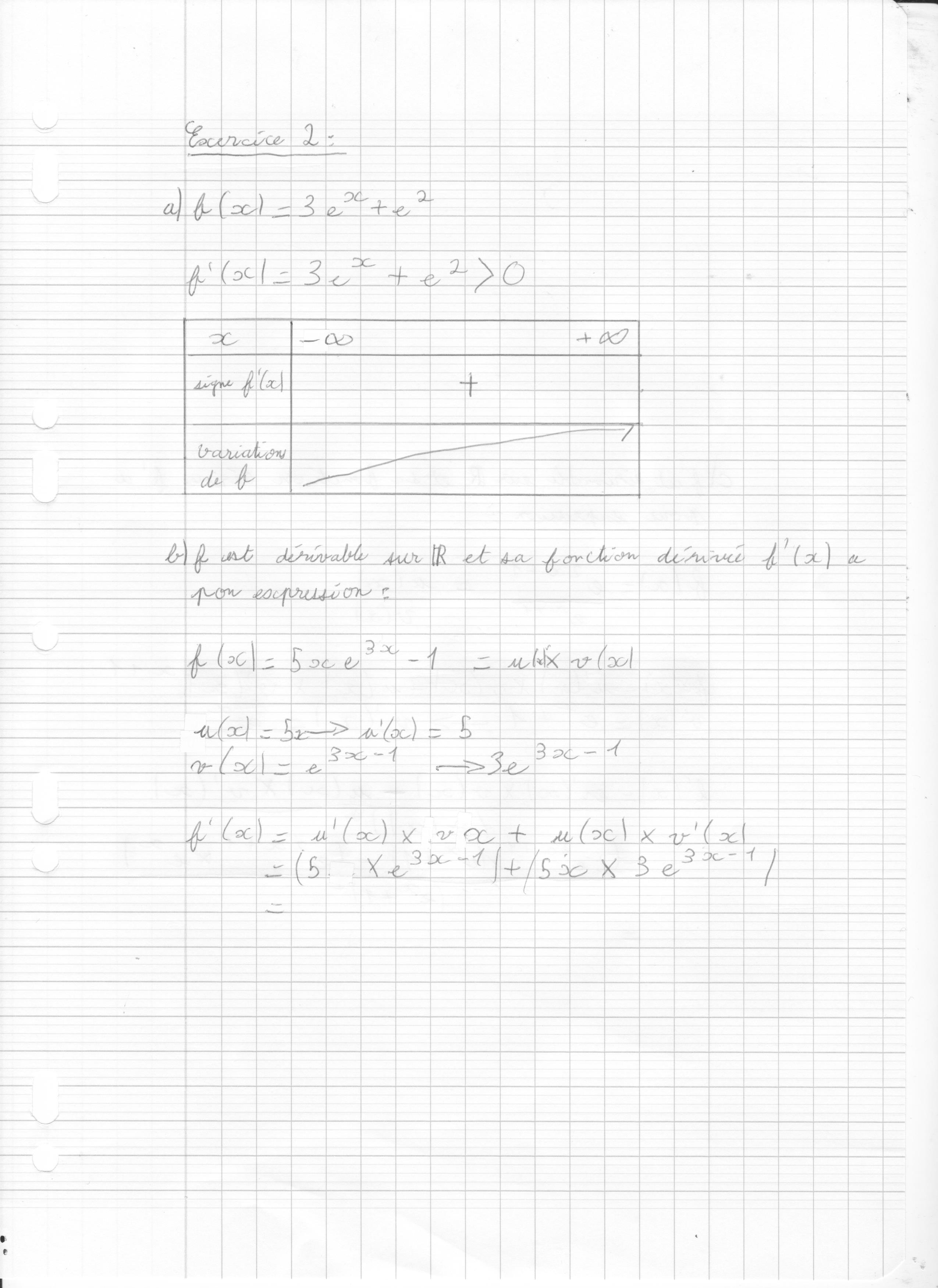 Pour le b) il faut terminer le calcul : \((15x+5)e^{3x-1}\)