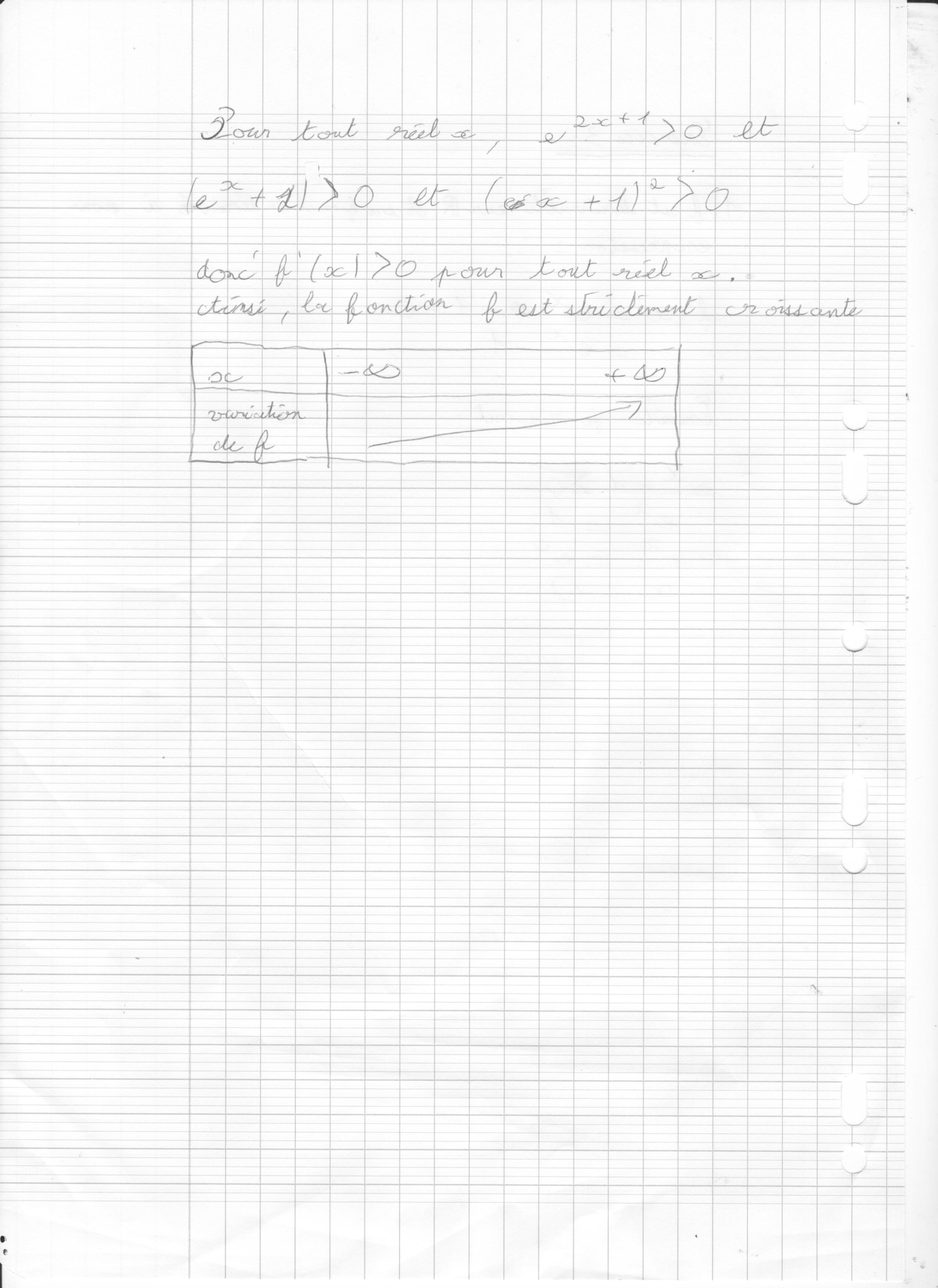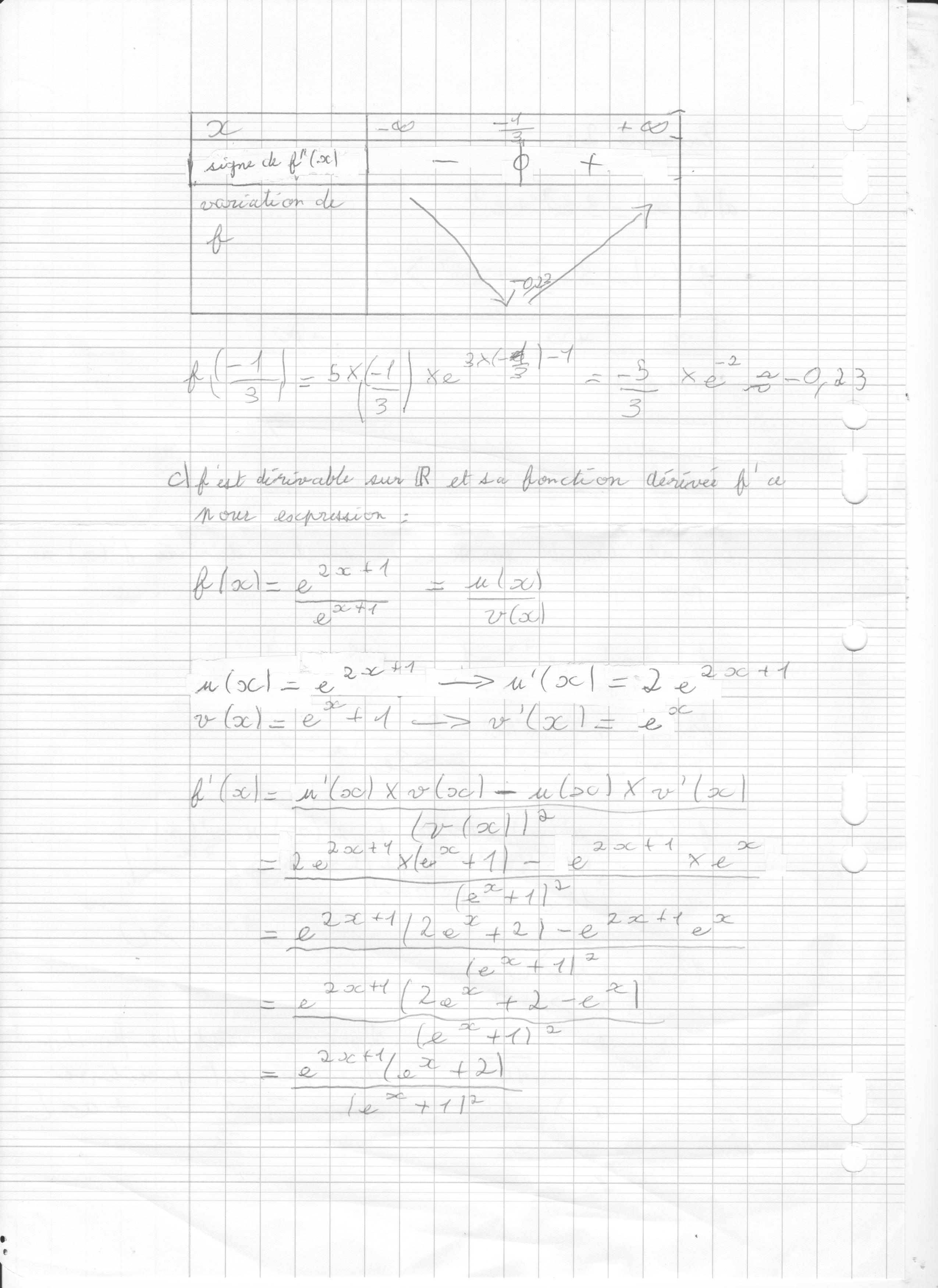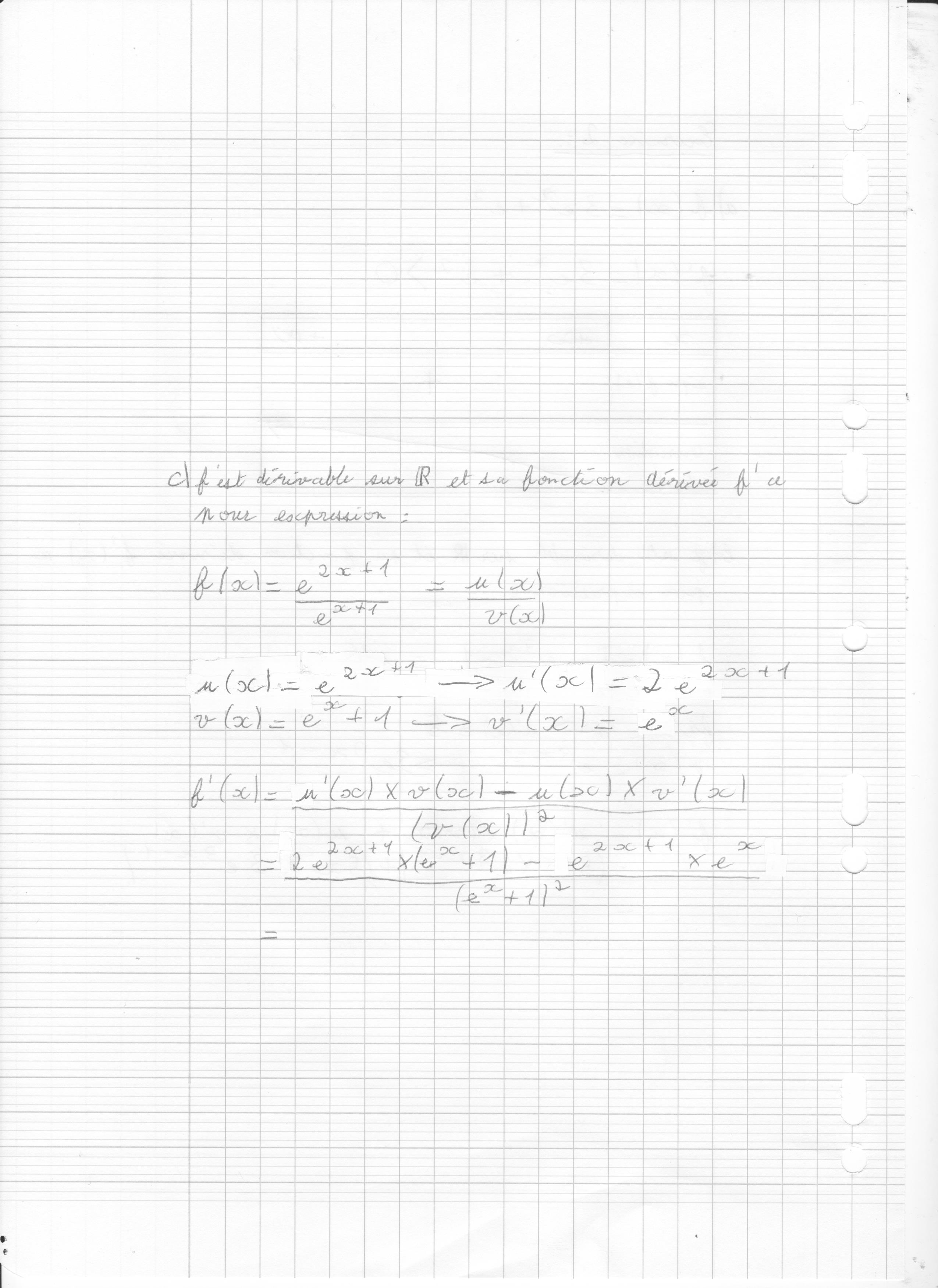 Pour le c) il faut terminer le calcul : il faut mettre \(e^{2x+1}\) en facteur au numérateur