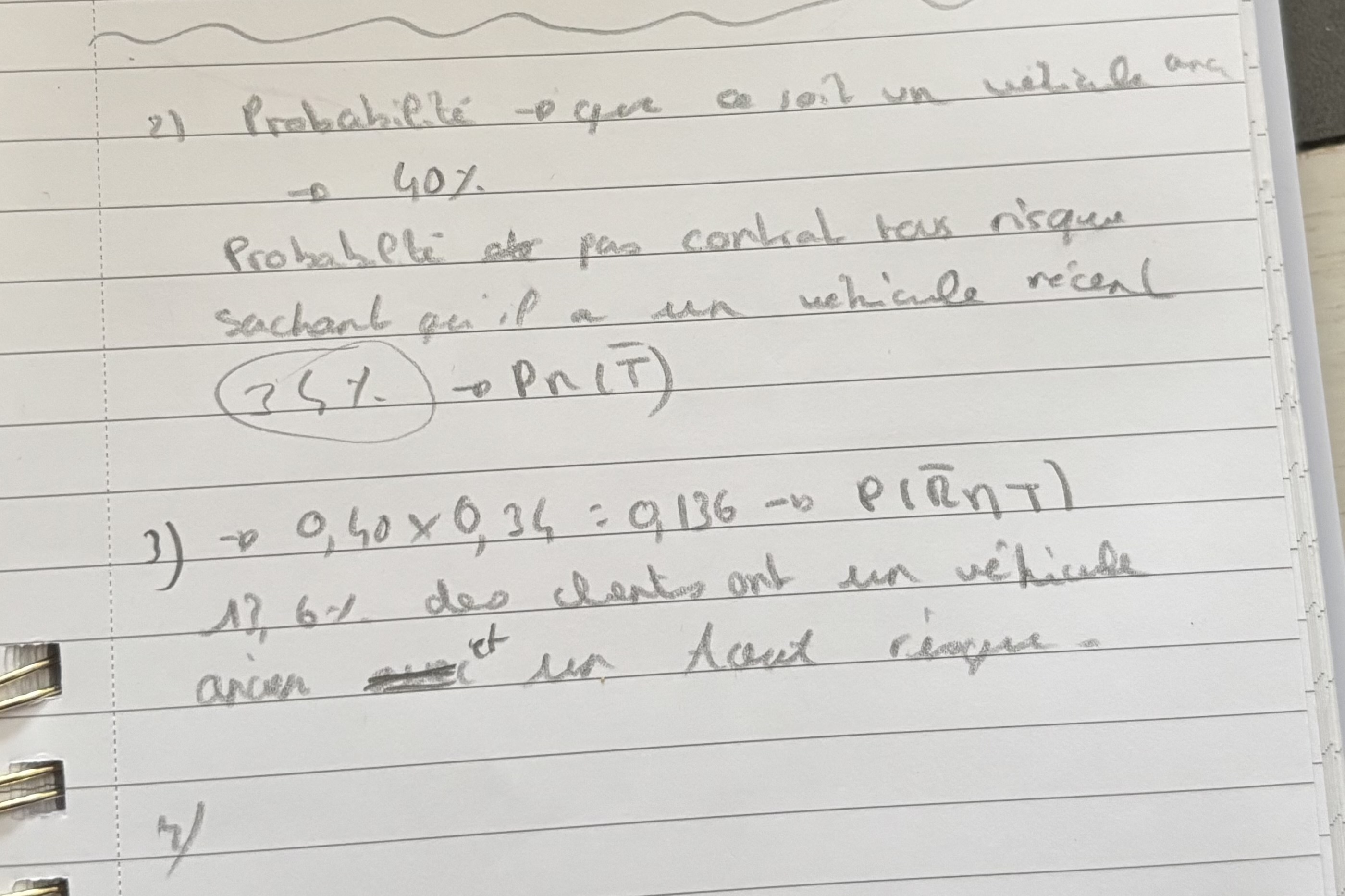 Pour la question 2), la proba de non R doit être exprimée en valeur décimale donc 0,4.