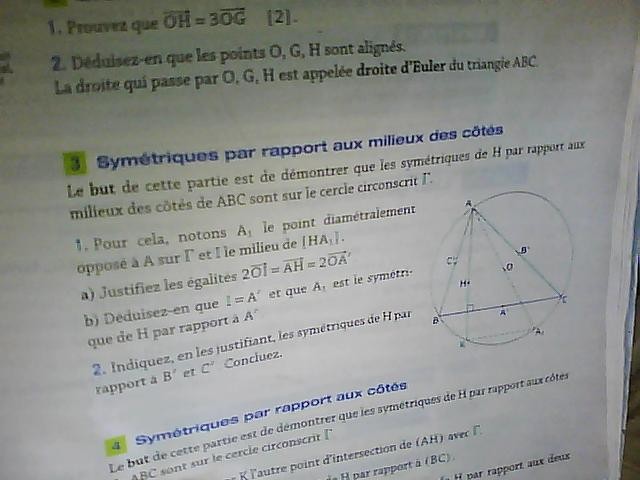 pour la question B I=A' il suffit juste de regarder l'égalité au dessus. A1 est le symétrique de H par rapport à A' car I autrement dit A1 est le milieu de [HA1]