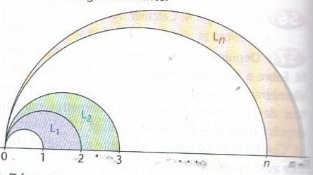 Pour tout entier n > ou = 1, Ln est l'aire de la partie du plan comprise entre les demi cercles de diamètre n et n+1 (voir figure ci-dessous)