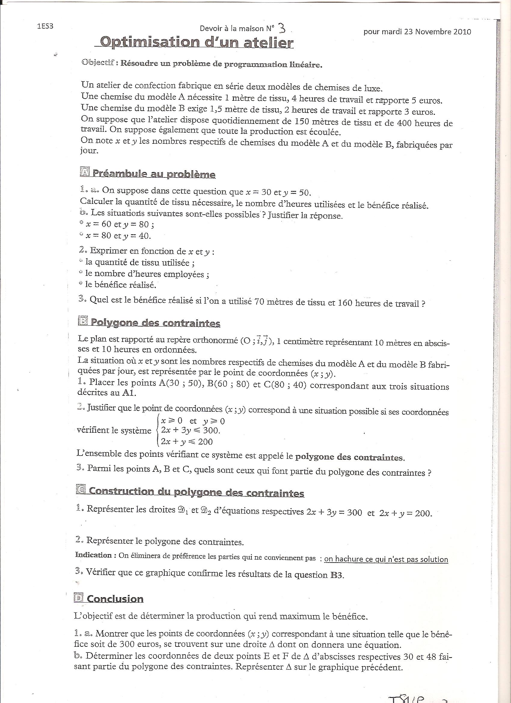 bonjour je travaille actuellement sur le même devoir mais je suis bloquer à la question B)2). Une aide me serait très précieuse. Merci :)
