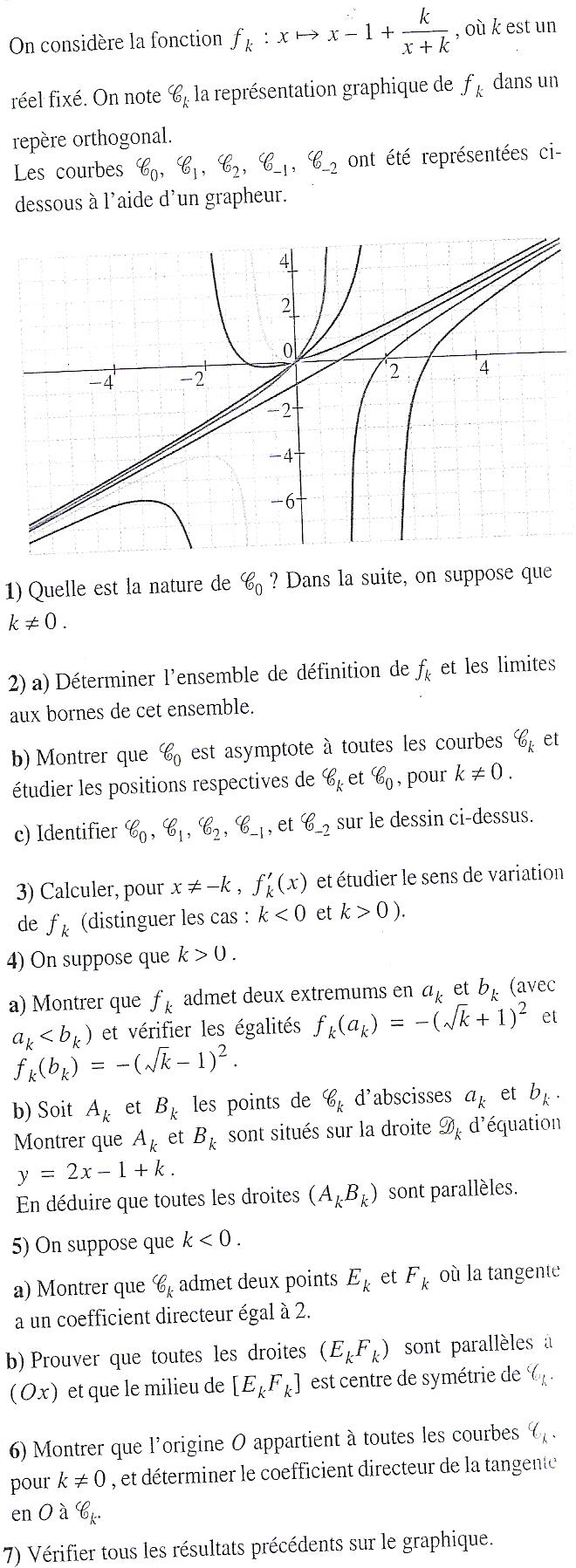 En dérivant, on obtient pour \(x\neq\,-k\) : \(f_k^{,}(x)=1-\frac{k}{(x+k)^2}\).