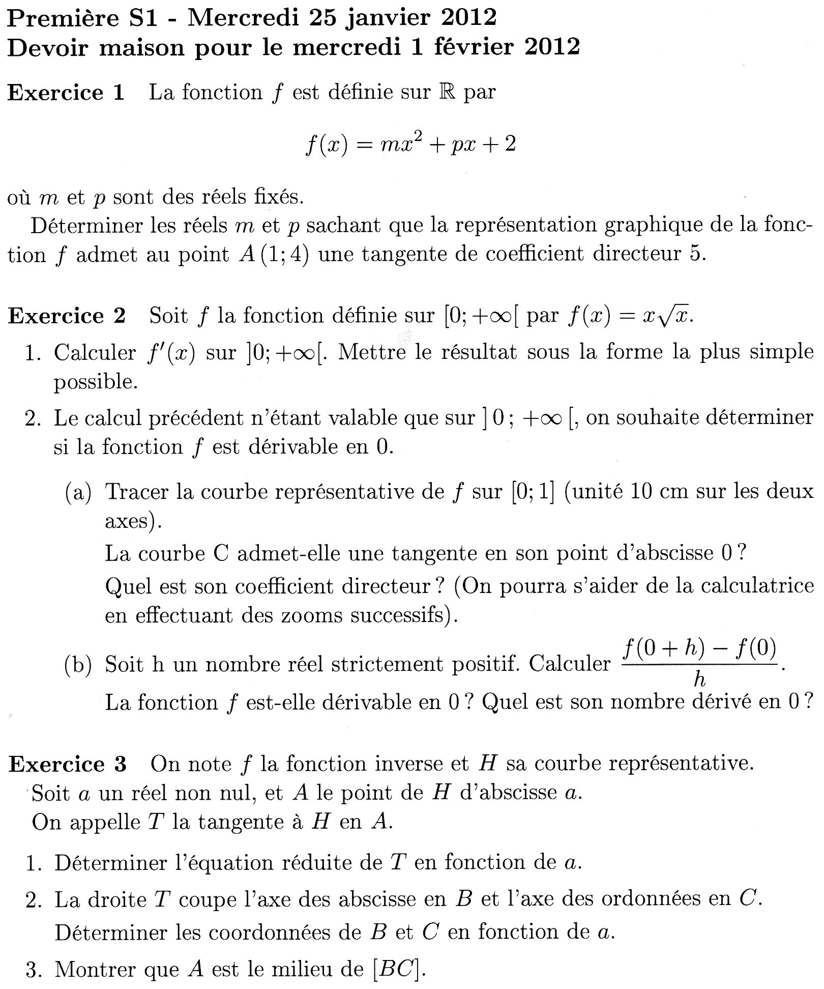 l'équation de la tangente en prenant l'abscisse du point A c'est à dire 1.