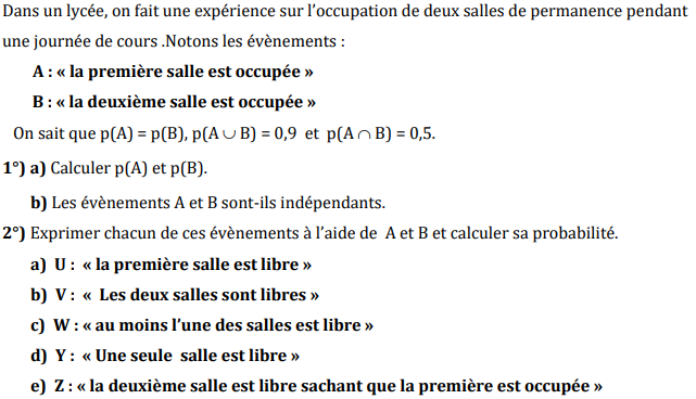 est-ce que la probabilité que les deux salles soient occupées en même temps inclus dans \(p(A\cup B)\) ?