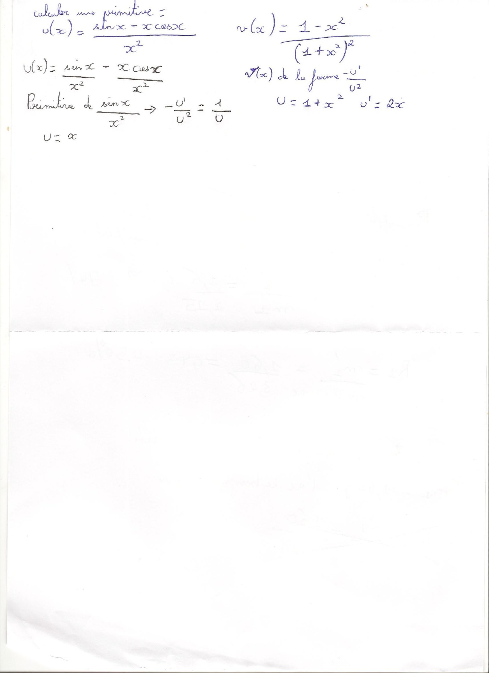 pourquoi u(x)=-sin(x) et v(x)=x ? Ce n'est pas plutôt u(x)=sinx?