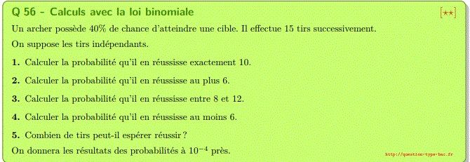 Pour la loi Binomiale de paramètres n et p, l'espérance est np, elle correspond à la moyenne qu'on peut "espérer" lorsqu'on répète plusieurs fois la même expérience, donc ton calcul est correct.