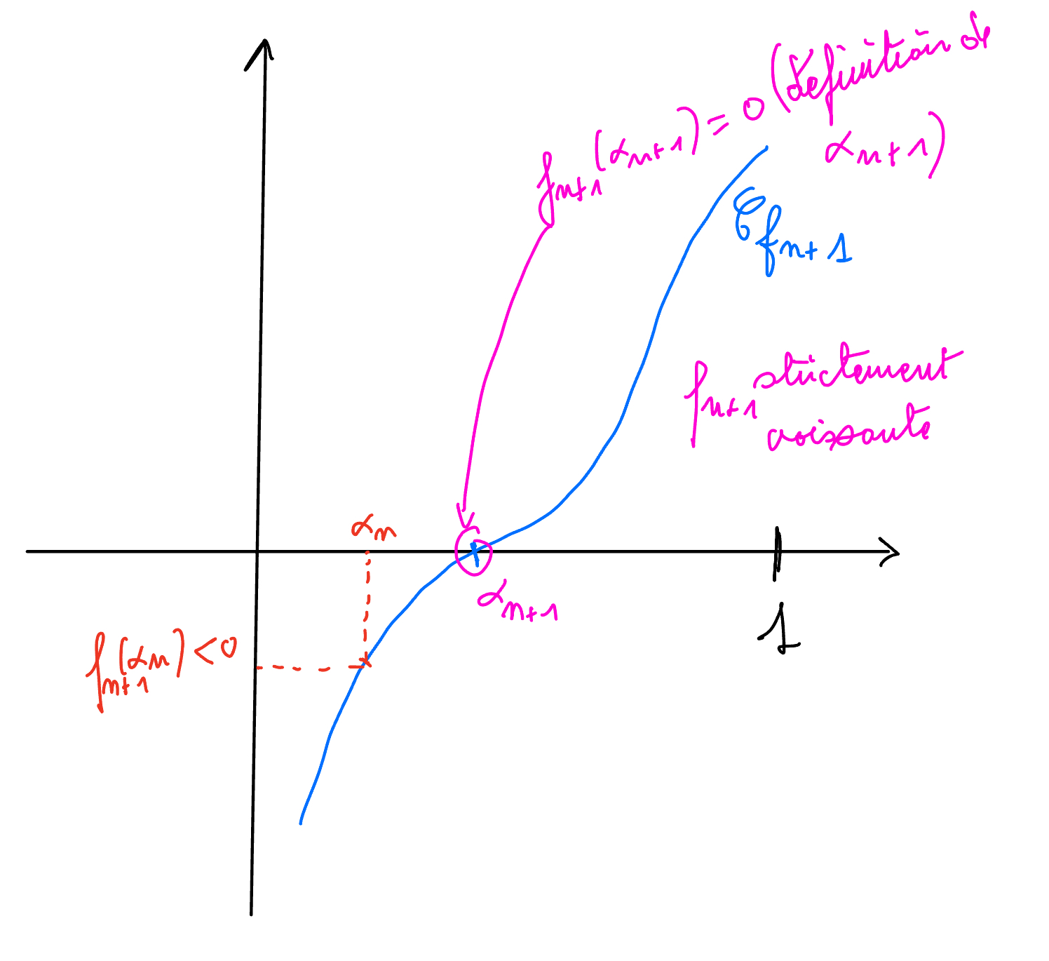 Cela te permet de voir que \(\alpha_n\leqslant \alpha_{n+1}\) donc que ta suite \((\alpha_n)\) est ....