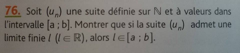 On peut procéder alors par contraposée, à savoir : si l n'appartient pas à l'intervalle [a,b], que pourra-t-on dire de la suite (Un) ?
