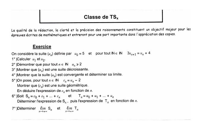 J'ai un exercice ou je bloque a la question 6 ,où il faut déterminer l’expression de Sn ,j'utilise la formule 1-q^(n+1)/1-q<=>3x1-(1/3)^n+1/1-(1/3)