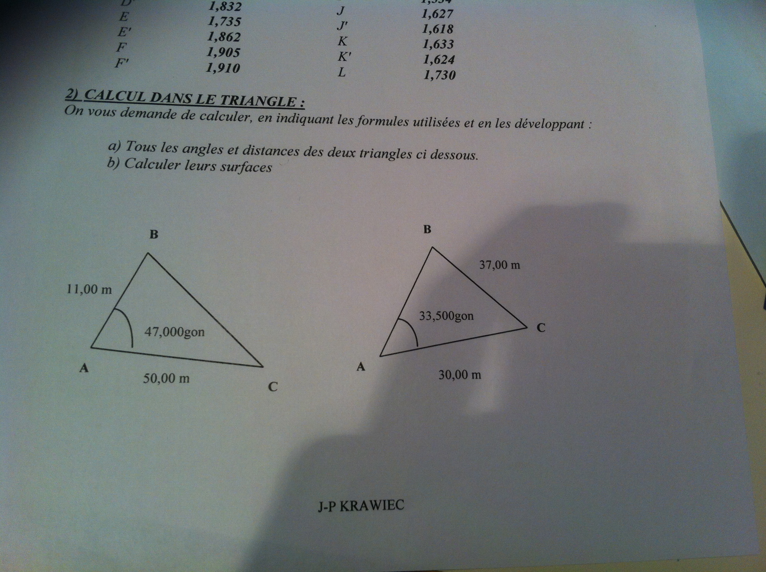 et je dois calculer toutes les longueurs et angles de ce triangle.