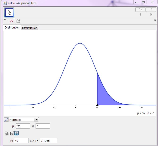 Je rentre donc :normalFRép(40,1000,32,7) mais cela ne me donne pas le résultat donné par notre prof.