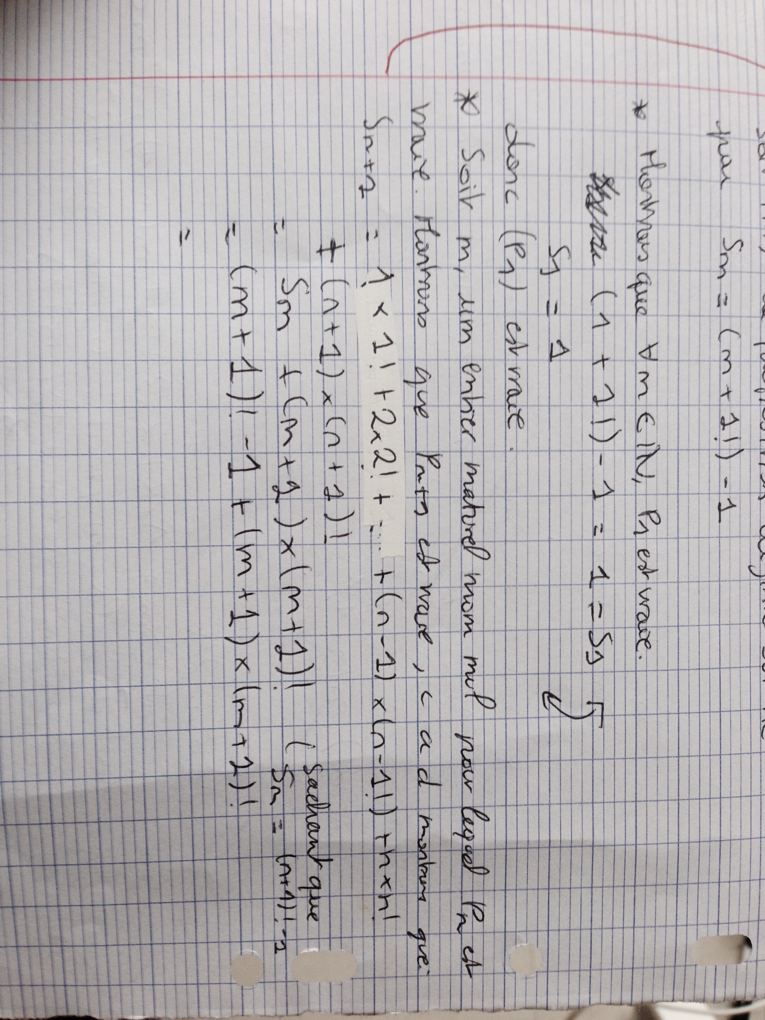 Il faut montrer alors que S(n+1) = (n+2)! -1 sachant que Sn = (n+1)! - 1.