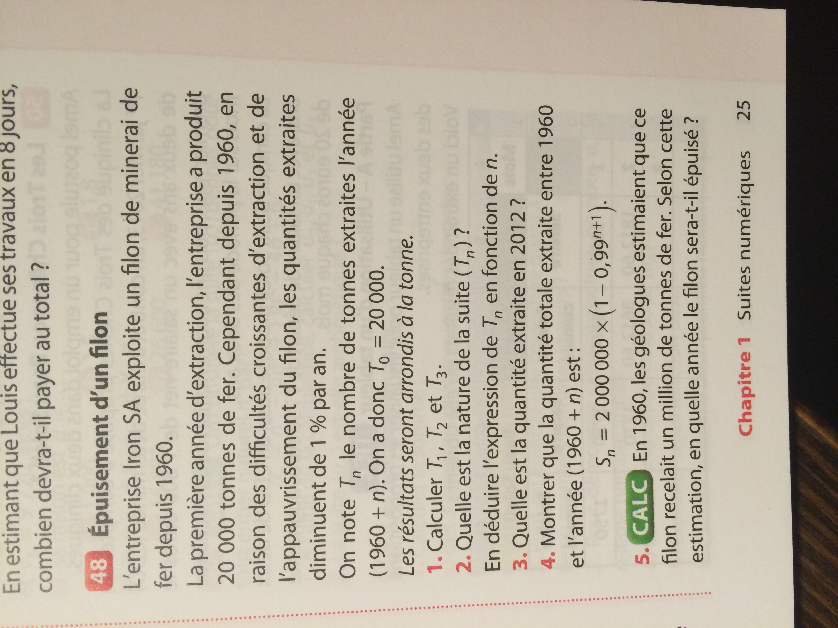 Pour la question 5, tu peux utiliser un tableur pour trouver n.