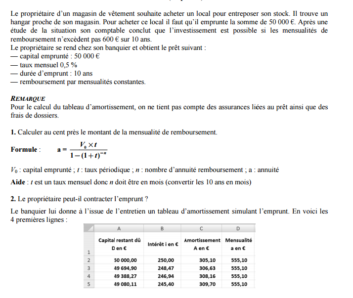 pour la 7) non je n'ai pas reussi a faire car 60 calcul ( car 60 mois c'est la moitié des 10 ans ) c'est bcp trop long.. donc effectivement je n'ai pas trouvé le capital restant precedent