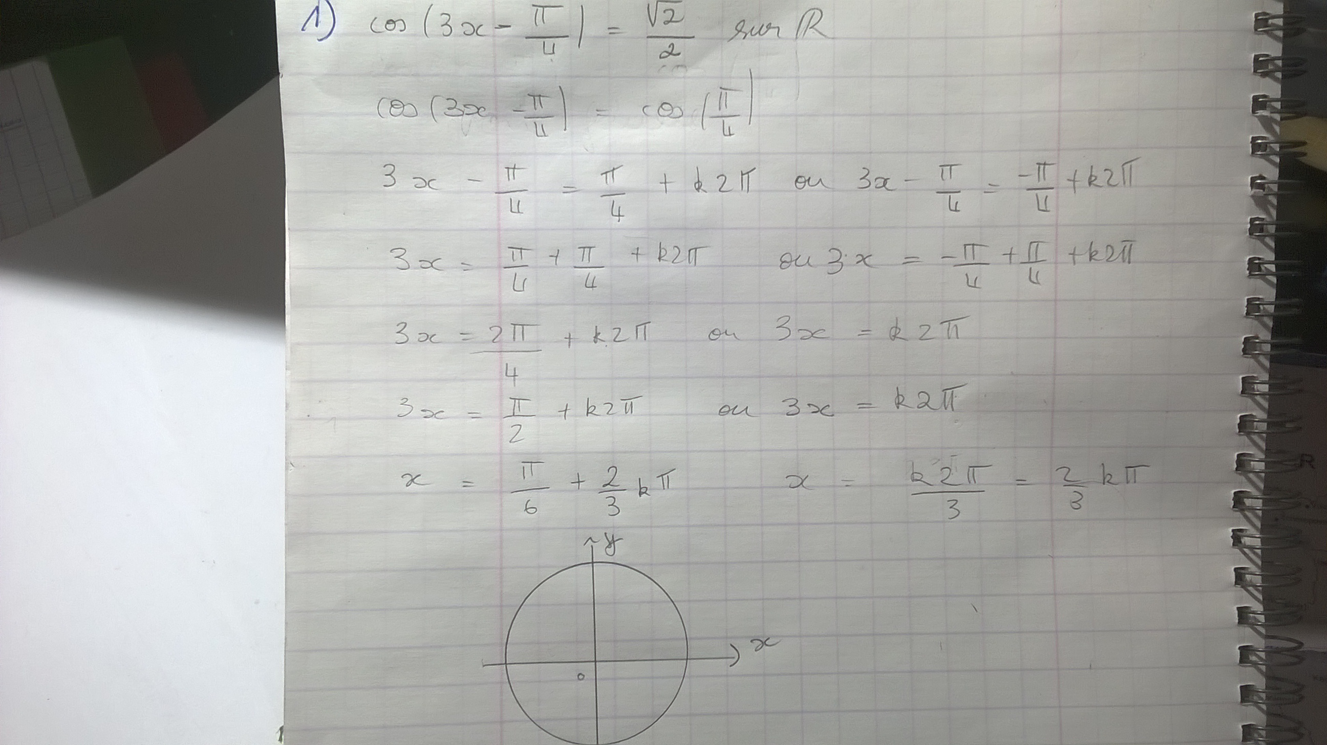 Le cercle, c est pour t aider à passer de cos a = cos b à une égalité sur a et b. Là, tu l as bien fait sans.