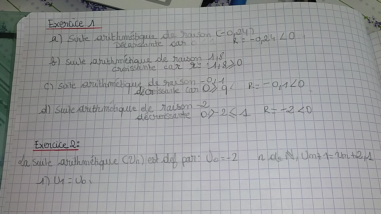 L'année dernière nous faisions que des suites géométrique et je trouvais ça très facile , mais là c'est la première fois que j'abord les suites arithmétiques.