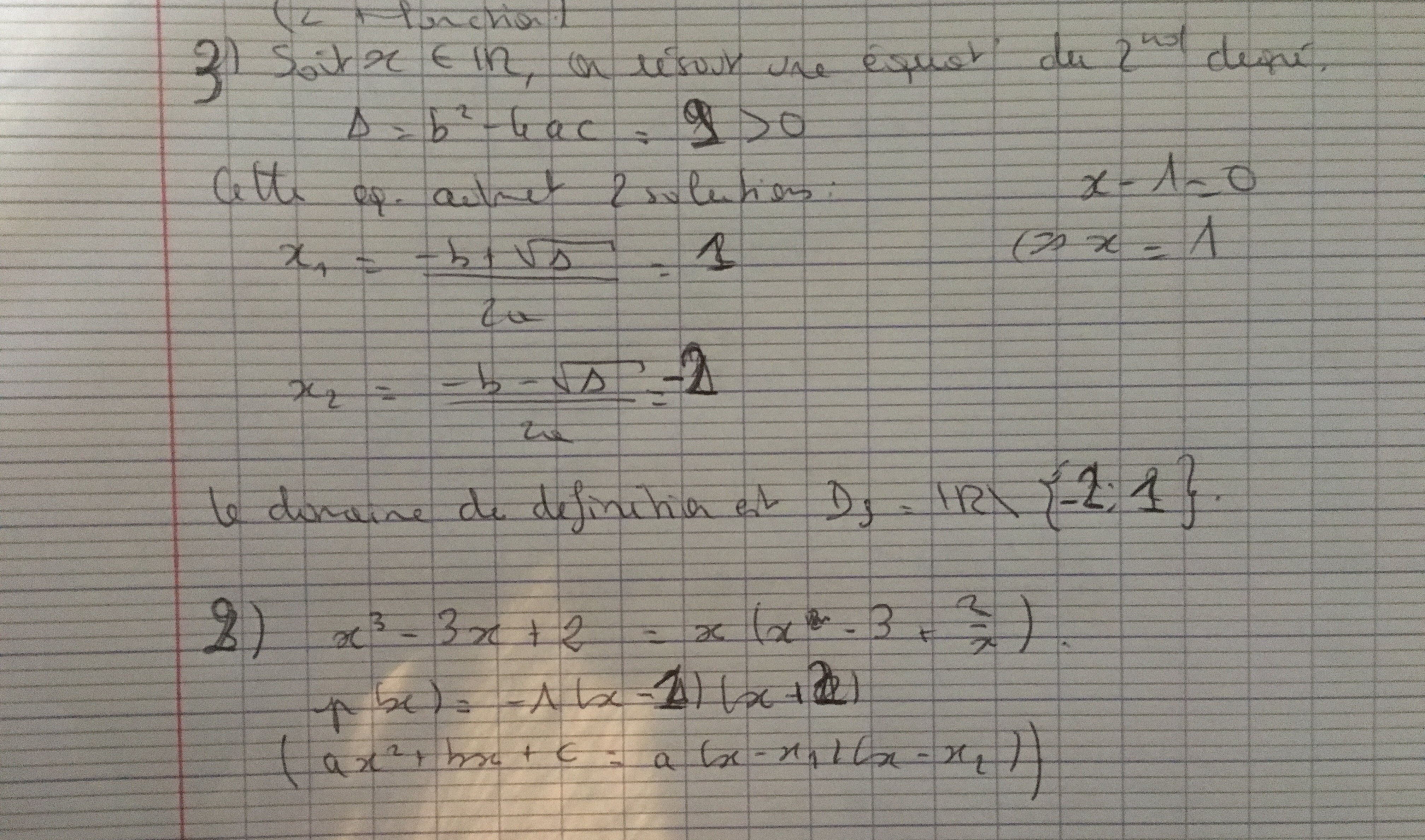 le discriminant de \(x^2+x-2\) est égal à \(\Delta=b^2-4ac=1^2-4\times 1\times (-2)\) ce qui ne fait pas 1.