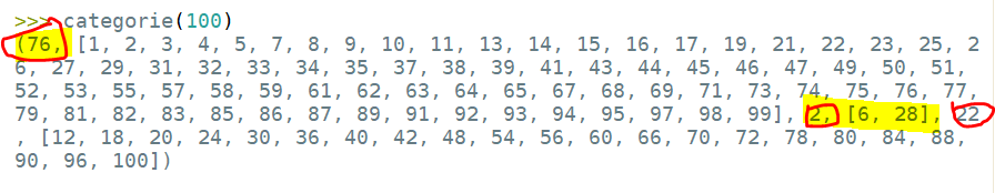 Je viens de comprendre comment modifier l'algorithme afin de déterminer le nombre d'entiers déficients, parfaits et abondants entre 0 et 100.