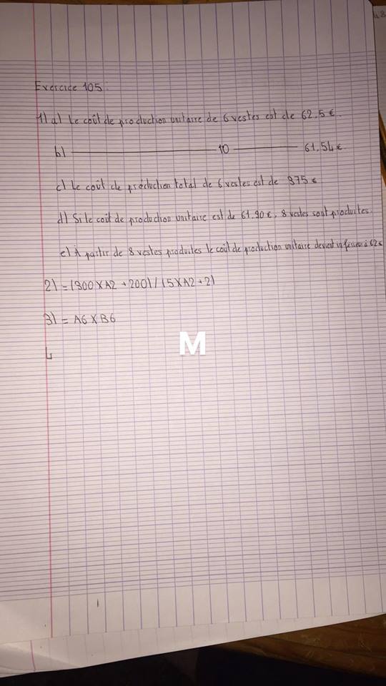 Le coût de production unitaire est c(x) pour x vestes produites.