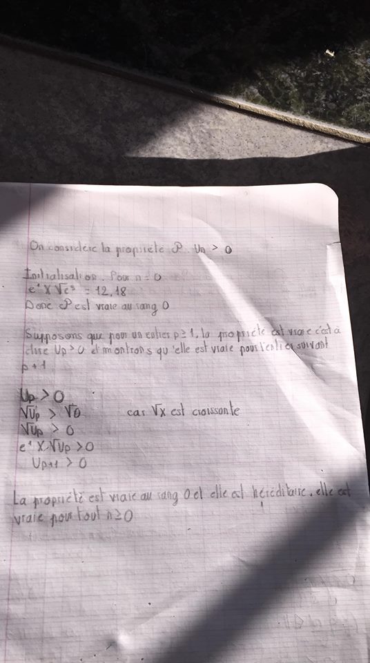Suite à vos remarques, j'ai commencé une nouvelle récurrence, mais je ne suis pas très sûr, qu'elle soit vrai.