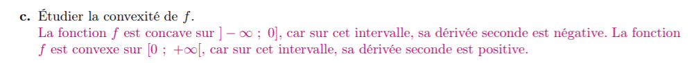 En effet, celle-ci m'indique que f est concave sur ]-inf;0] car la dérivée seconde est négative et qu'elle est convexe sur [0;+inf[ car la dérivée seconde est positive.