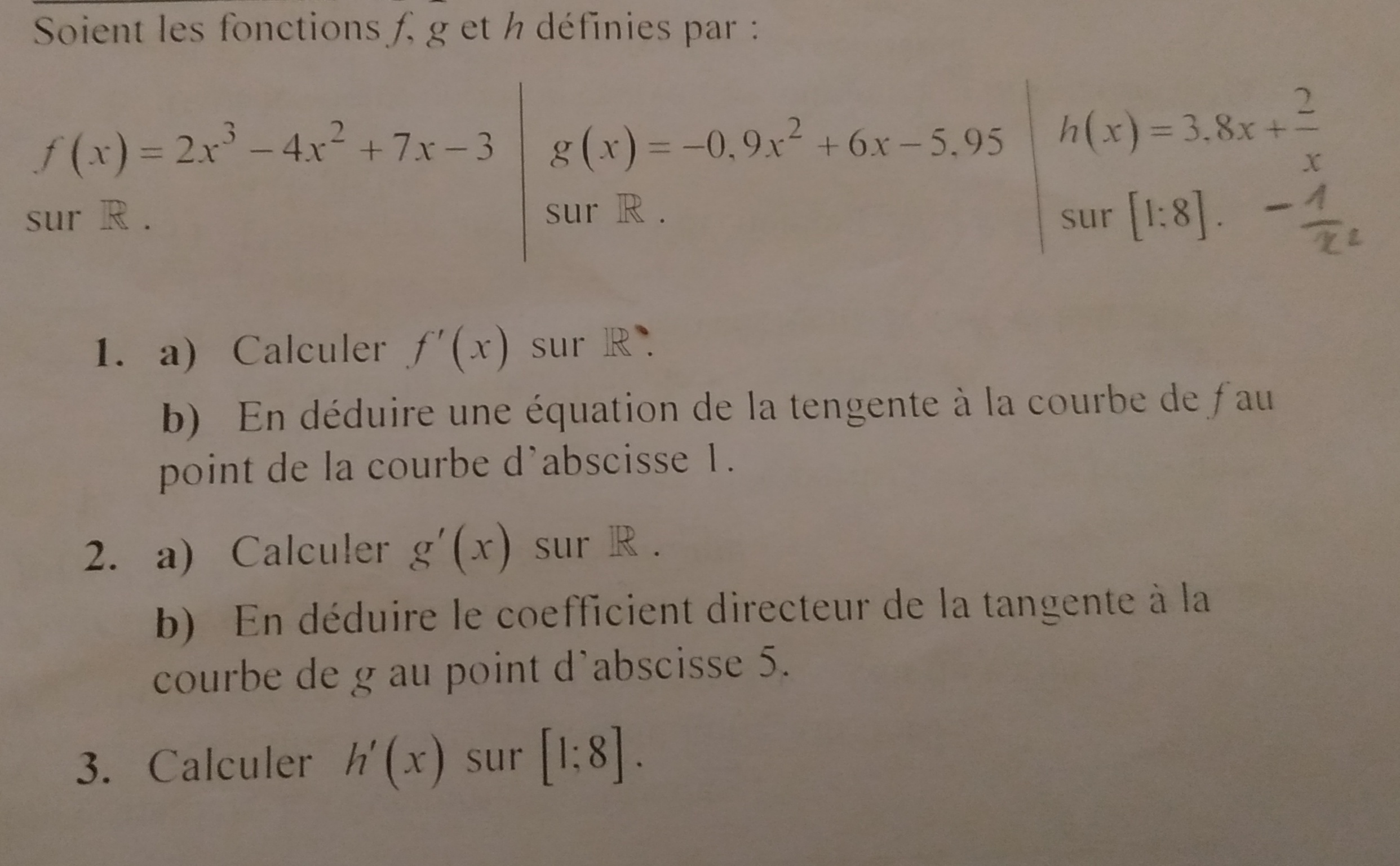 Pour la 1b, il existe une formule pour l'équation d'une tangente au point d'abscisse a :