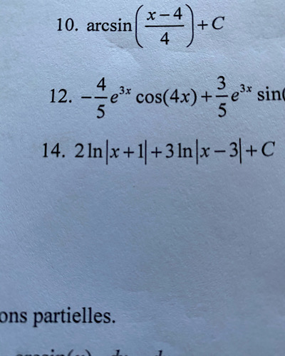 Je te laisse continuer, sachant que les primitives de \(\frac{u'}{\sqrt{1-u^{2}}}\) s'écrivent Arcsin(u) + C avec C une constante.
