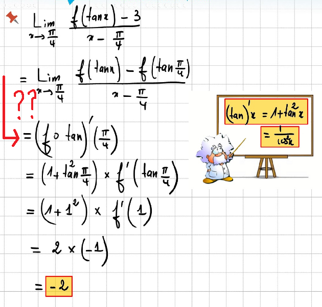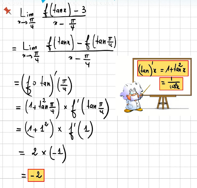 Par conséquent, la limite de ton quotient est bien (fotan)'(pi/4).