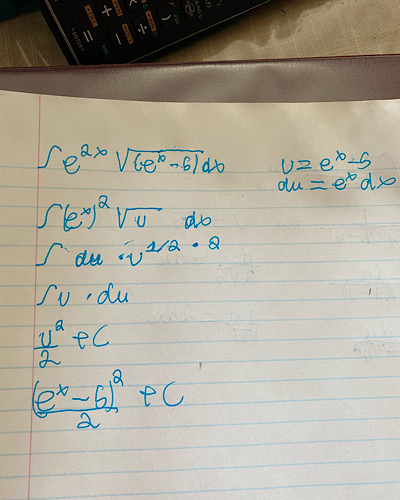 e^(2x )√(e^x-5) Voici l’intégrale j’avais posé u=e^x-5 et du=e^x dx.