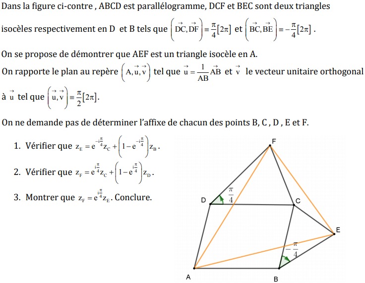 Merci d'avance (si c'est possible tracer le repère (A,\(\vec{u}\),\(\vec{v}\)) sur le même figure et me reprendre rapidement parce que je passerai mon concours demain encore merci )