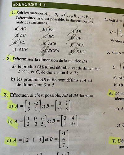 Dans ce que tu envoies, tu enchaînes les produits AxBxBxA, ce qui tombe effectivement sur 3x3 mais ce n’est pas la bonne démarche car il faut considérer les deux produits séparément pour obtenir des informations sur les dimensions de B.