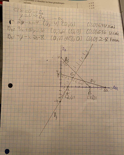 A(2,0) , B(8,0) et C en faisant l’intersection entre les deux droite j’arrive a une coordonnée différente que celle du corrigé)