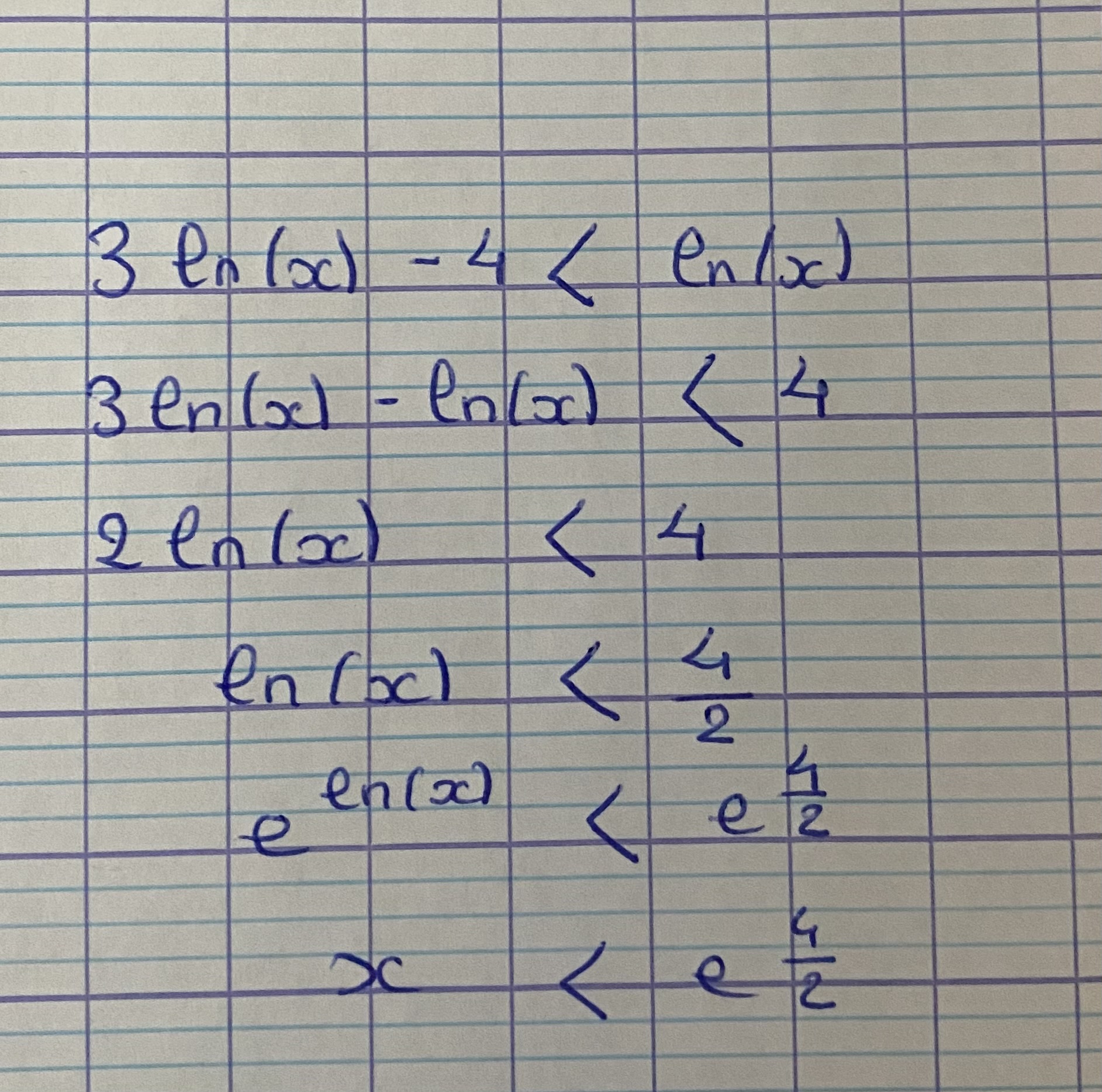 3ln (x) - ln(x) - 4 < ln(x) - ln(x)