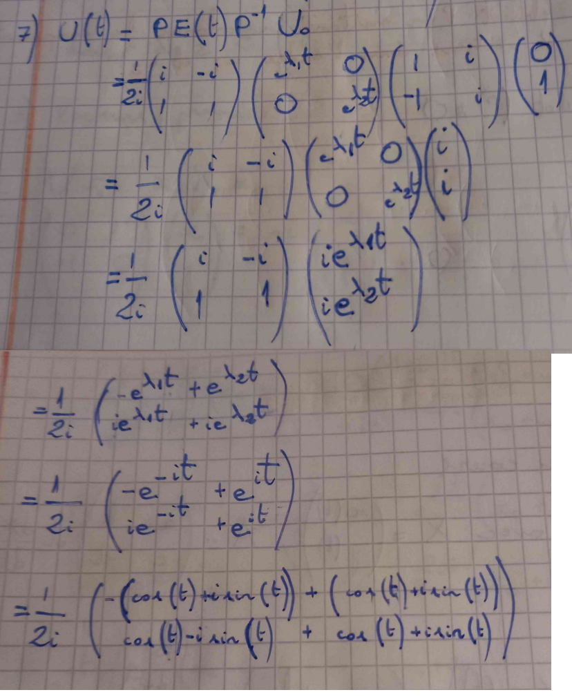 Cela fait que je ne peux plus suivre le corrigé pour tout le calcul qui en découle, c'est à dire U(t) = PE(t)P^(-1)U0.