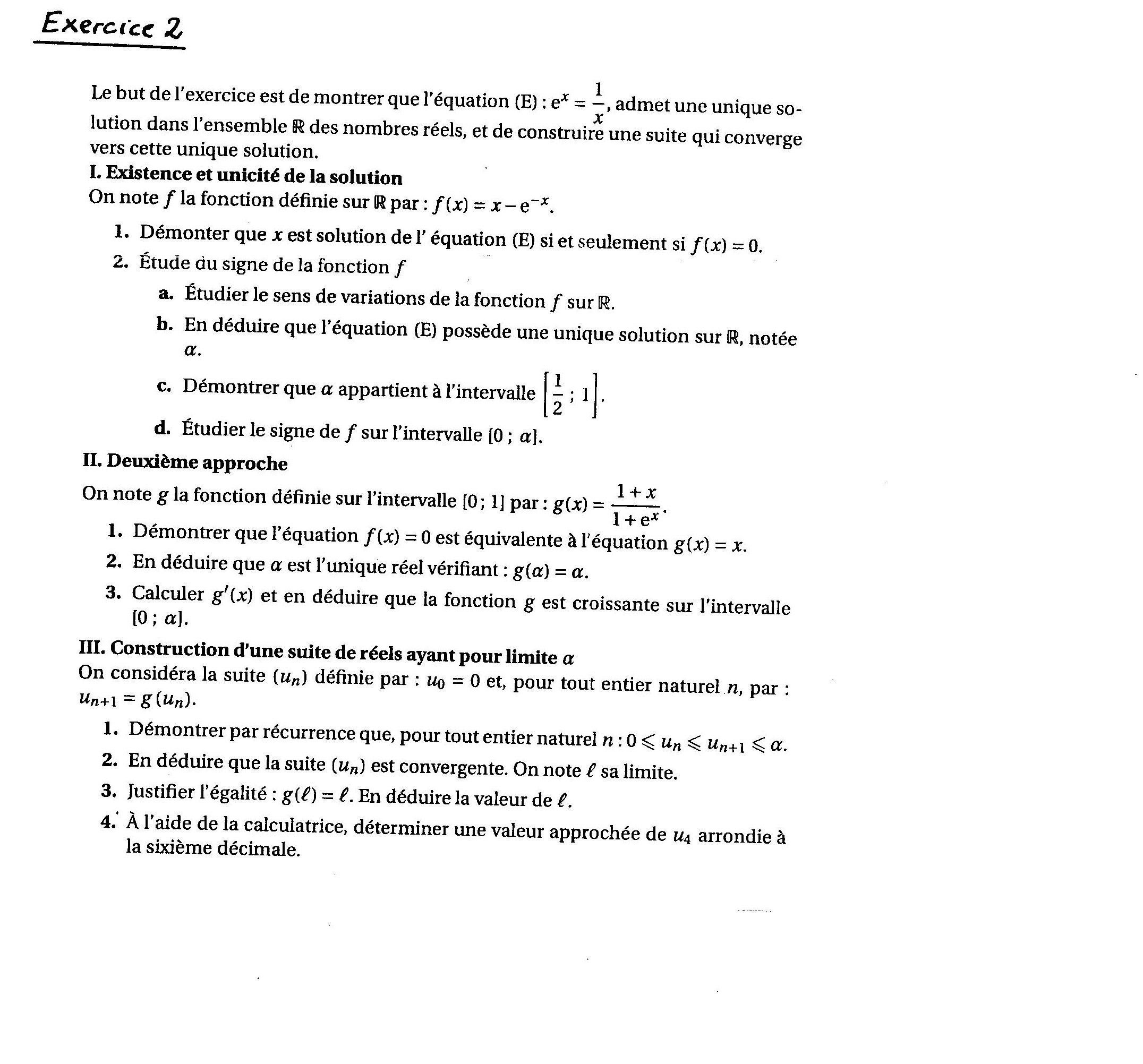 III Question 3) Il faut justifier l'égalité g(l) =l, l étant la limite de un.