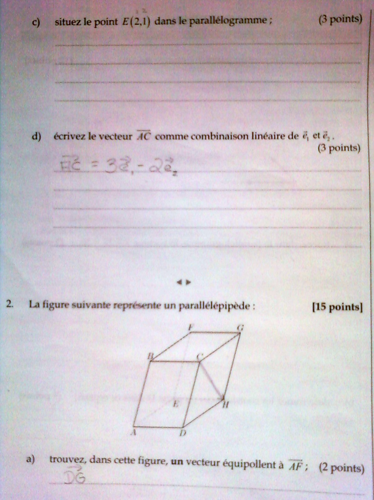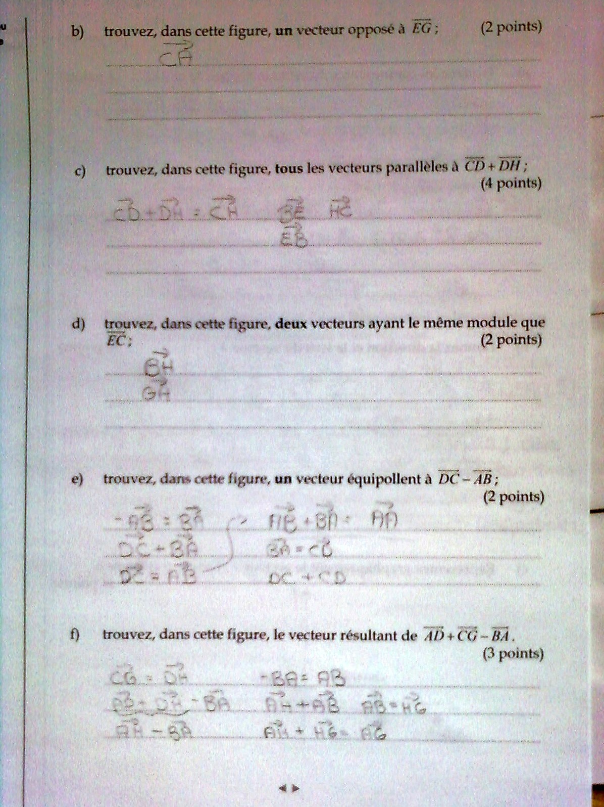 Cela me semble bon y compris le "e" on a bien le vecteur AA, ou le vecteur CC.
